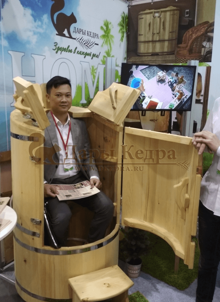 Круглая фитобочка представляет собой мини парную, которую можно использовать не только в спа-салонах, но и дома. Бочка изготовлена из древесины кедра без отбора по сучкам, поэтому такая модель считается более доступной. Фитобочка оборудована откидными створками, дверцей и отверстием для головы. Во время парения человек сидит внутри кедровой бочки, а голова находится снаружи. Благодаря этому исключается возможность перегрева. Подлокотники из кедра, встроенные ручки на створках и двери делают эксплуатацию более удобной.